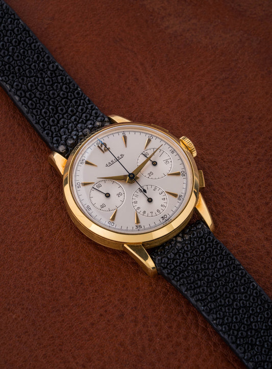 Jaeger Chronograph 1950s Valjoux 72 Yellow Gold NOS